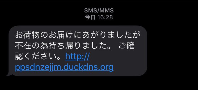 こんなSMSが来たらリンクを確認したくなる(笑) 確認する前にドメインをGoogle先生に聞いたら、フィッシング詐欺のようだから確認していないけど。 pic.twitter.com/pDikAwFcWB